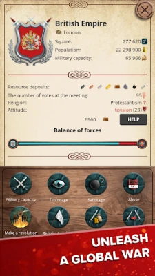 Zhromaždite impozantnú armádu a postavte nepremožiteľnú námornú flotilu, pripravenú brániť vaše hranice a rozširovať vplyv. Či už čelíte vonkajšej agresii, potláčate separatistické hnutia, alebo bránite svoje územia pred rabujúcimi silami, vaša strategická zdatnosť bude podrobená skúške. Kľúčom k stabilite je aj dôkladná správa zdrojov: zabezpečte prísun ropy, železa, kameňa, olova, kaučuku a ďalších kľúčových surovín pre ekonomický rast a vojenskú moc. Okrem toho sa ponorte do komplexnej diplomacie; uzatvárajte pakty o neútočení, vyjednávajte výhodné obchodné dohody a zakladajte ambasády, aby ste si na medzinárodnej scéne vybudovali sieť spojenectiev a vplyvu.