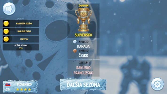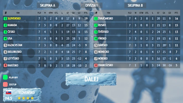 Vydajte sa na epickú cestu hokejového šampionátu, kde sa stretávate s národnými tímami v prepracovanom ligovom systéme. Od skupinovej fázy, ktorá dovoľuje experimentovať s rôznymi hernými štýlmi a taktikami, až po napäté play-off zápasy, kde každý ťah a rozhodnutie má svoju váhu. Zažite gradáciu emócií – od uvoľnenosti úvodných kôl až po nervy drásajúce súboje o medaily, často rozhodované v predĺžení či nájazdoch. Zbierajte víťazstvá, vylepšujte hodnotenie svojho tímu a sledujte, ako sa zlepšuje výkon vášho brankára. Prebojujte sa z najnižšej, jedno-hviezdičkovej divízie až na vrchol svetového hokeja, kde na vás čakajú legendárne veľmoci. Tri úrovne obtiažnosti – Ľahká, Normálna a Ťažká – zaručujú, že výzva porastie s vašimi schopnosťami a túžbou po sláve na svetovom rebríčku.
